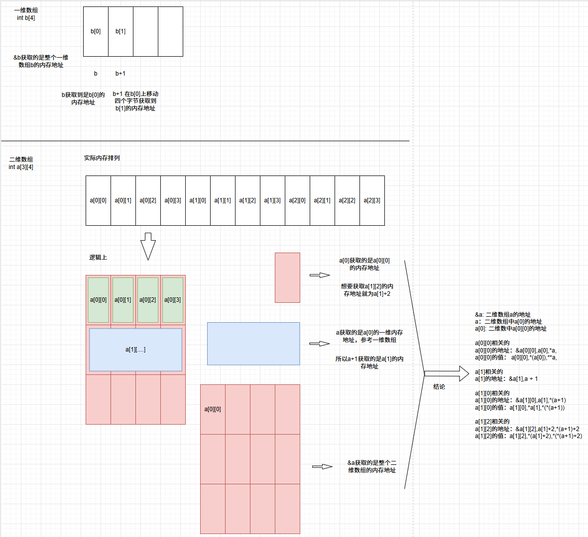// 获取到a[2][2]的地址和值 相当于指针往后推了多少个int字节